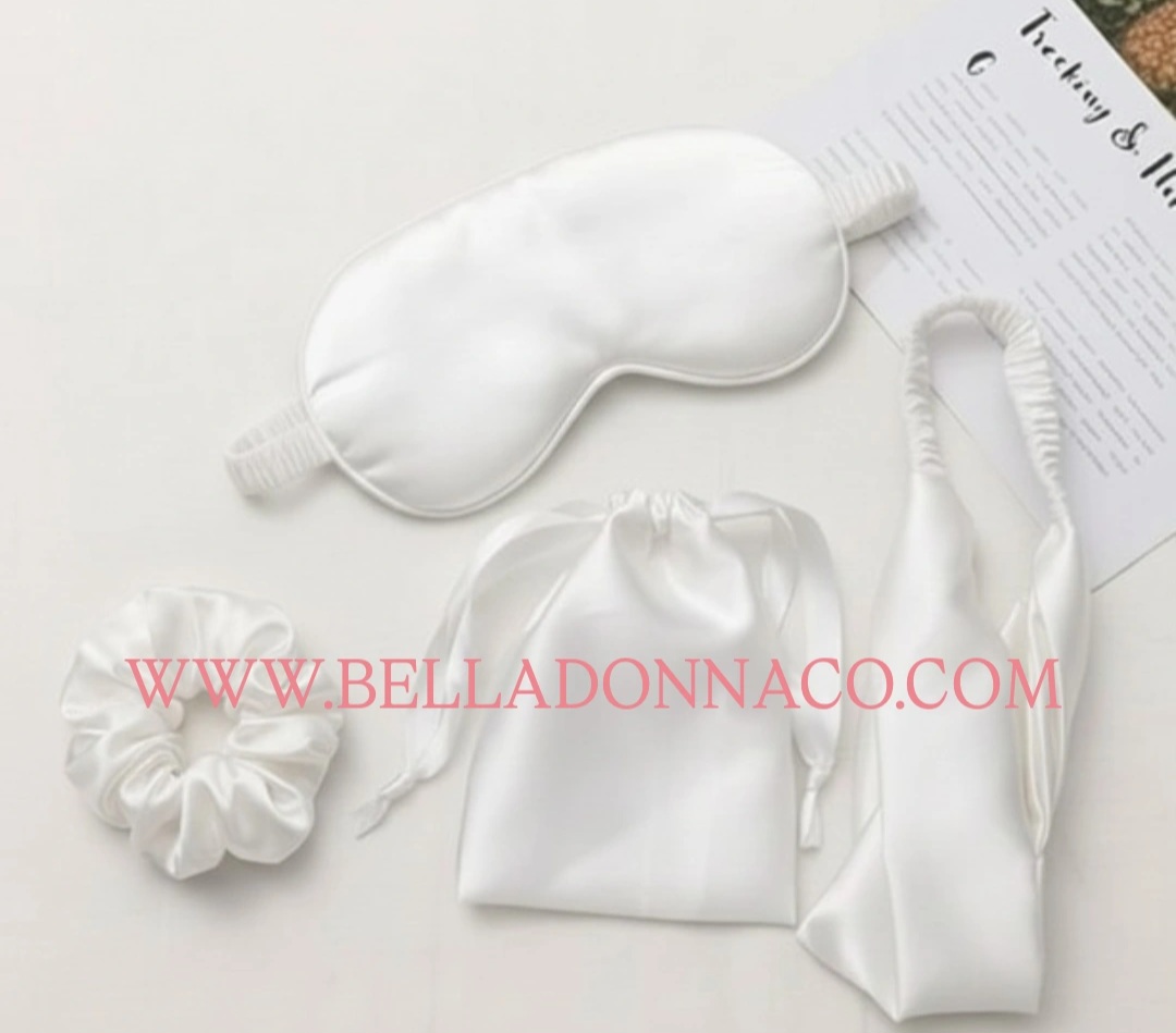 شامل ۱عدد چشمبند و هدبند و اسکرانچی ساتن ابریشم همراه با کیسه پارچه ایی