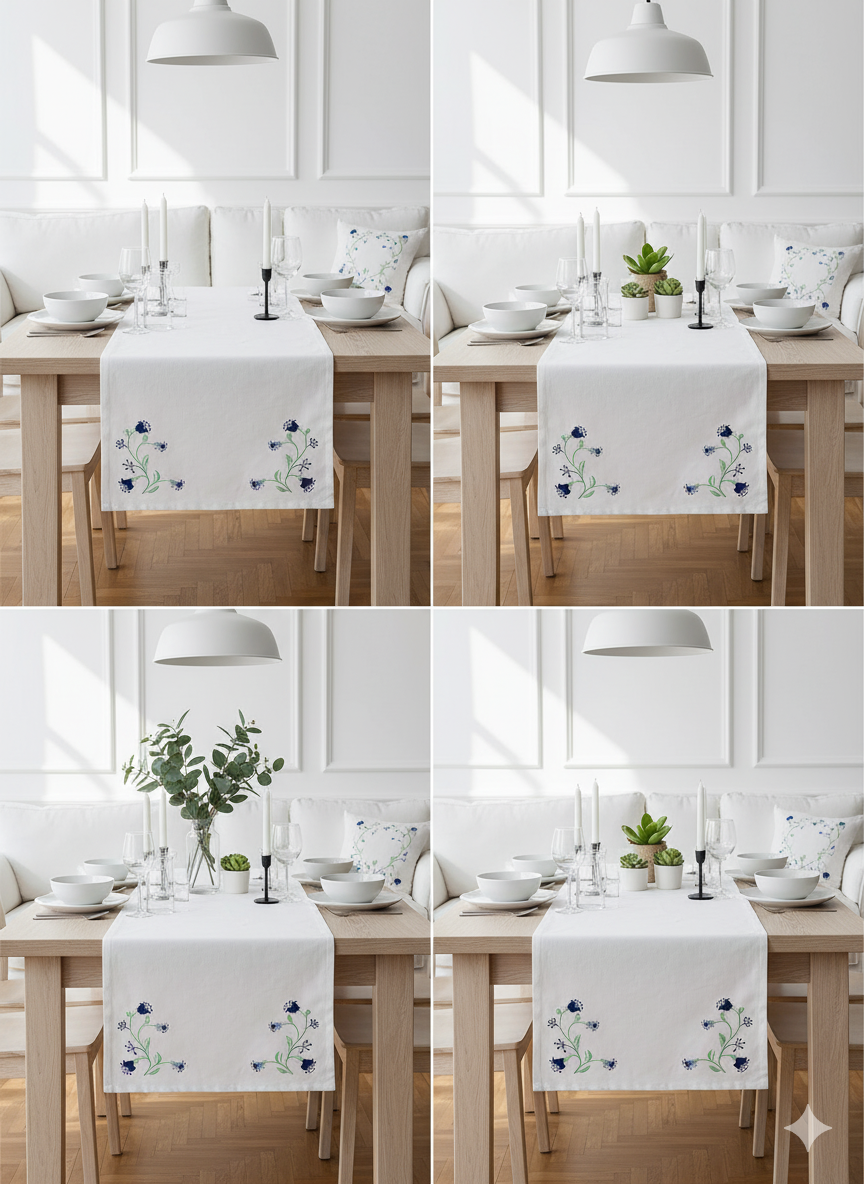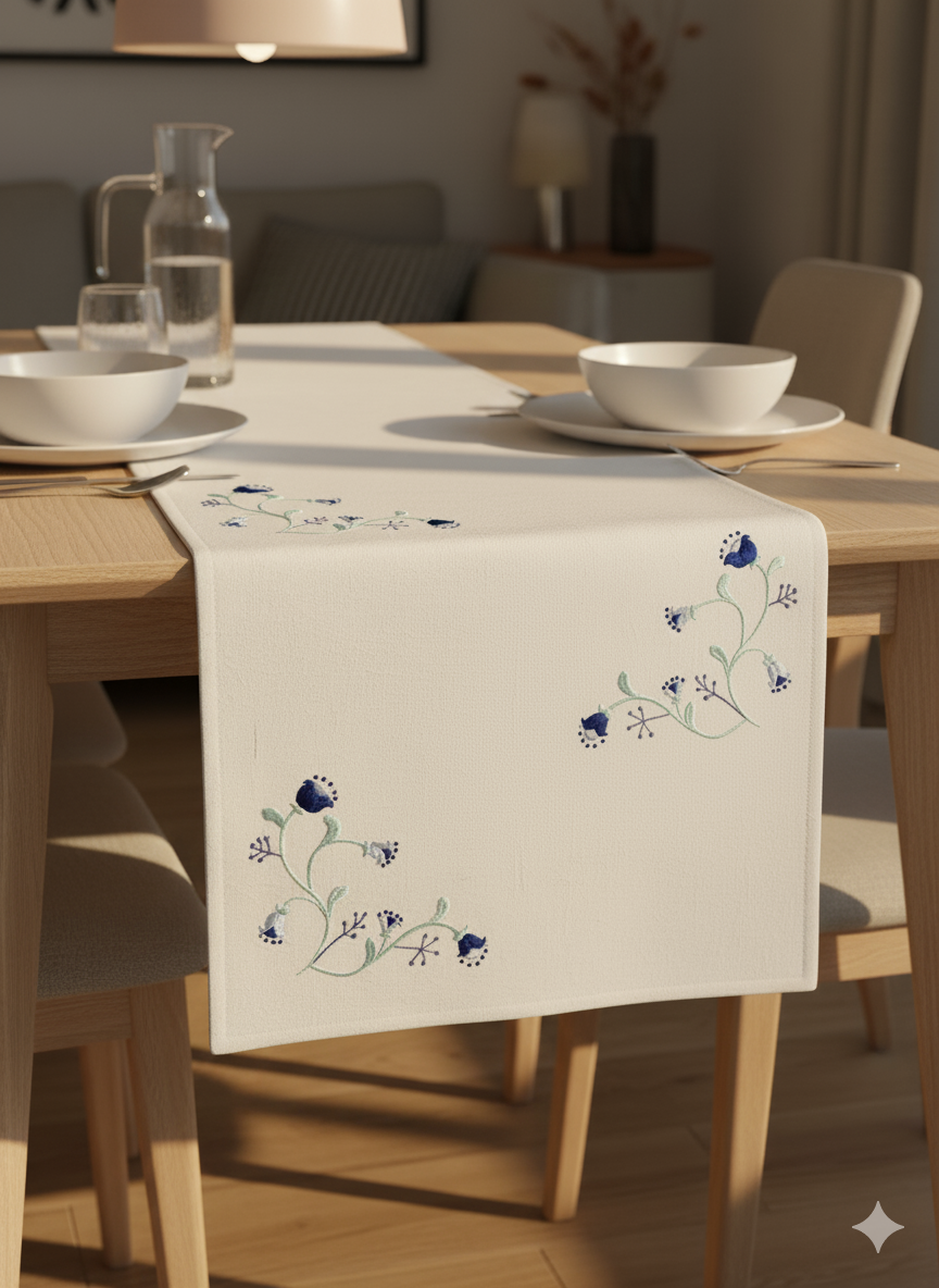 ✨️ظرافت آرامش و زیبایی را مهمان میزتان کنید✨️. 💎رانر سفید کتان ۵۰*۱۲۰ گلدوزی و آستر کشی. 🔹 جنس: پارچه مرغوب و مقاوم کتان داک ترک ضدلک🔹 رنگ: اطلسی ملایم و خاص – انتخابی متفاوت برای دکور مدرن و کلاسیک. 🔹ویژگی: گلدوزی شده با نخهای باکیفیت و رنگ ثابت پنگوئن، مقاوم در برابر شستشو. 🔹 ابعاد: ۵۰*۱۲۰ cm مناسب برای میز ناهارخوری یا کنسول. 🔹 آسترکشیشده: برای حفظ استحکام و ایستایی بهتر. این رانر با رنگ اطلسی آرامشبخش و گلدوزیهای ظریف، جلوهای هنری و شیک به فضای خانه میدهد. ترکیب ایدهآلی برای مهمانیها، دکوراسیون لوکس یا حتی هدیهای خاص برای عزیزانتان. ✅رنگ خاص و متفاوت برای دکوراسیون شیک ✅ کیفیت بالا و دوخت حرفهای ✅ ترکیبی از زیبایی و کارایی در یک محصول